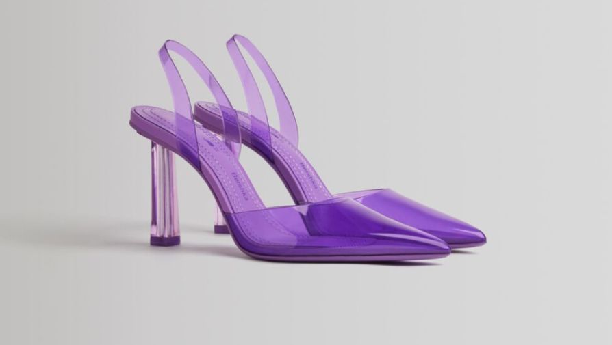 Si, y transparente, con lo que se verá tu pie ceñido en este original zapato que atraerá todas las miradas de la fiesta donde lo lleves. Es un zapato destalonado con tacón algo más bajo, de 8,5 cm., en color morado y tacón de metacrilato, para más originalidad. Está fabricado en poliuretano termoplástico y su precio en Bershka es de 29,99 euros. Los hay también en color beige y transparentes.