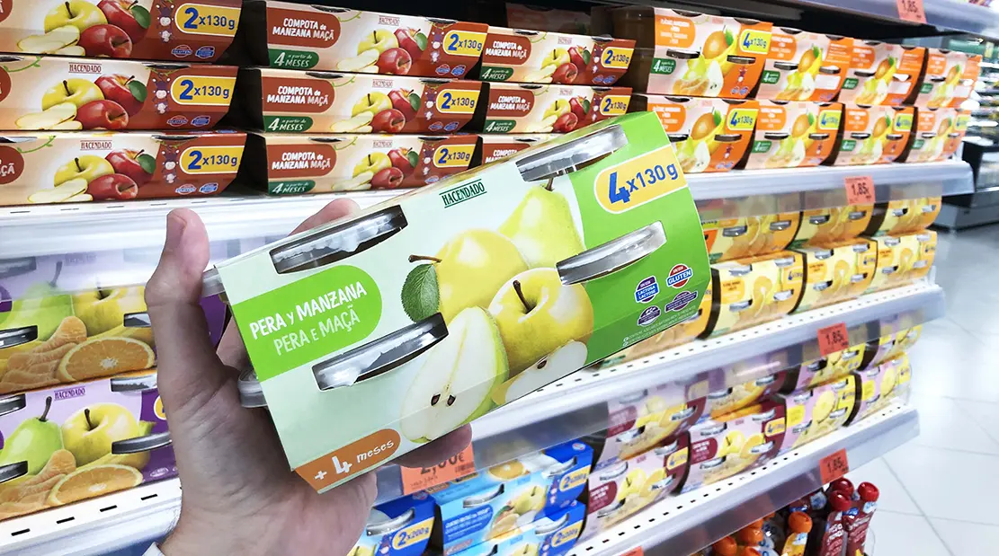Mercadona, compañía de supermercados físicos y de venta online, ha reforzado la calidad de los Tarritos de Frutas Hacendado para hacerlos aún más naturales y no contiene ni almidón ni zumos a partir de concentrados. Además, incorporan una tapa que facilita su conservación una vez abierto.