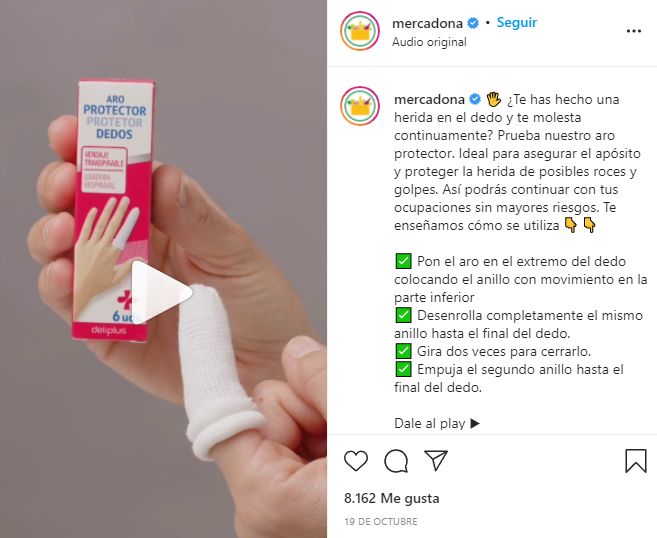 Se vende en caja de 6 unidades y sirve para proteger los dedos de golpes o roces. Es un vendaje fácil de aplica y transpirable, con lo que facilita las cosas respecto a una venda normal, ya que tiene la forma y el cierre ya hecho. En el Instagram de Mercadona te explican cómo ponértelo. La caja cuesta 2,80 euros.