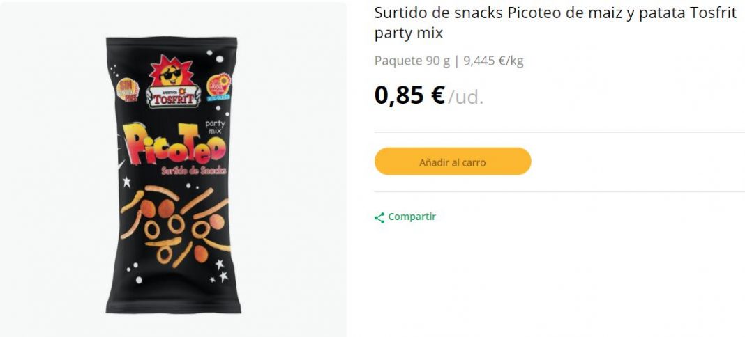 No hablemos ya de la variedad de snacks y de picoteo que ofrece Mercadona, pero una vez más no se duerme en los laureles y sigue ofreciendo novedades que además son un éxito de ventas. Es el caso de esta nueva bolsa de snacks para picoteo. Es un surtido de maíz y patata Tosfrit. El paquete es de 90 gramos y su precio es del 0,85 euros.