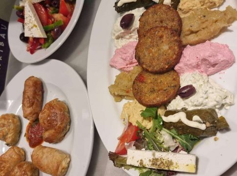 Dentro de las opciones que ofrece Greek Aribau, destaca el menú degustación, en el que se puede elegir entre distintos platos. Pensado para al menos 2 personas, comienza con una variedad de entrantes: ensalada griega, tiropita o spanakopita (ambas masas filo rellenas con queso o verduras) y pikilia (un plato compuesto por una variedad de ingredientes típicos).