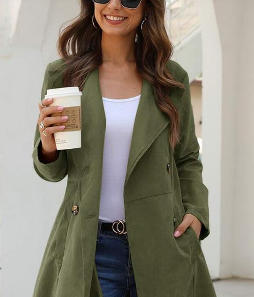 ¿Te has dado cuenta de que los abrigos de color verde militar están muy de moda? Si estás pensando en hacerte con uno puedes comprarte este que tienen a la venta en Shein. Destaca por tener un cuello de solapa y un práctico bolsillo lateral. Su precio es de tan solo 16 euros.