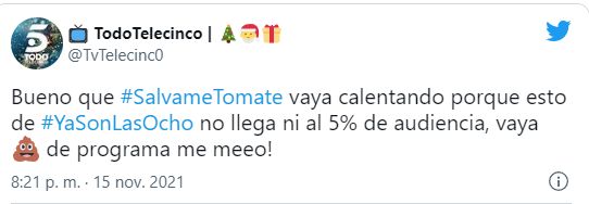 Con Omar Montes como primer invitado y por tanto como padrino, la primera entrega de ‘Ya son las ocho’ se ha calificado en redes sociales como caótica. Es más, cuando falta algo es cuando lo echas de menos, y alguno pedía la vuelta de ‘Sálvame’. «No entiendo nada”, “prefiero el Tomate”, “Que despropósito de programa” o “ya os podéis poner las pilas” han sido algunos de los comentarios.