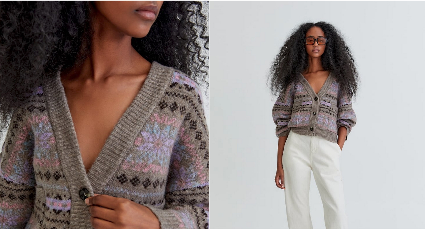 Otra alternativa al anterior es este cárdigan de punto jacquard con botones de Pull&Bear. Su precio es de 29,99€, aunque en este caso no podrás elegir acabados, solo tallas.