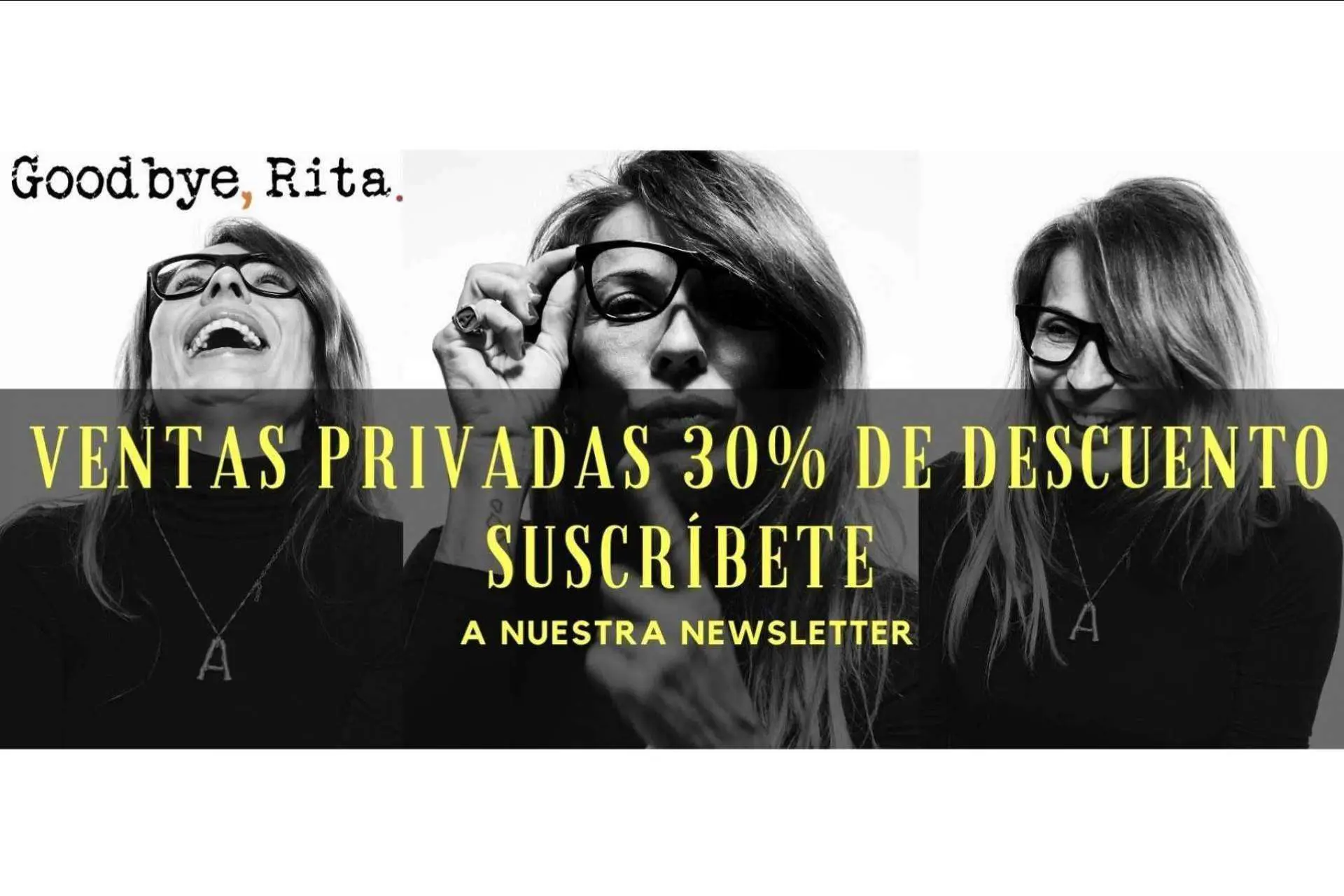 Ofreceremos durante este mes descuentos puntuales a las personas que están suscritas a nuestra newsletter. Es un descuento de agradecimiento por querer ser parte de nuestra comunidad y por darnos su confianza. En Goodbye Rita queremos seguir acompañando a quien confía en nosotros, pues nuestro deseo no es tener clientes, sino fans, personas que no quieran o necesiten unas gafas, sino unas Goodbye Rita, que compartan nuestros valores y que quieran cambiar la forma de ver las cosas.