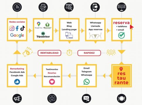 Este sistema crea contenido en redes sociales como TikTok, Facebook e Instagram para generar reacciones. Asimismo, impulsa un flujo de información que favorece al algoritmo en plataformas como ElTenedor, Tripadvisor y Google Maps, para promocionar su ubicación. A su vez, se fortalece el landing page en la web o el blog para convertirla en una herramienta más accesible y directa, facilitando así las reservas.