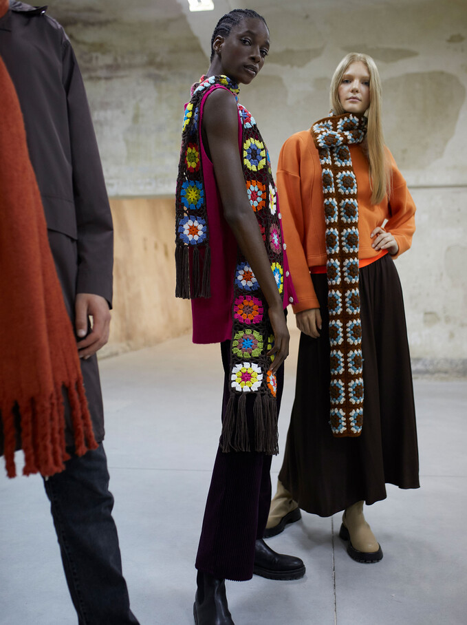 No puede faltar en tu colección de bufandas, esta preciosa y larga, Maxi bufanda de crochet, en vistoso multicolor que le dará vida y esplendor a cualquier combinación que desees modelar en este invierno