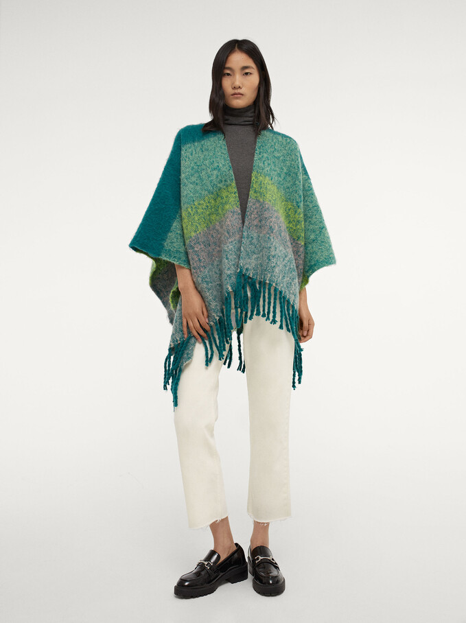 8Poncho de punto con flecos Parfois