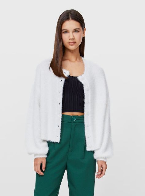 Hay prendas que, además de ser muy bonitas, da gusto ponérselas. Y ya no solo porque al estar confeccionadas a base de punto te permitan combatir las bajas temperaturas, sino porque además son muy suaves. Y eso es justo lo que ocurre con esta chaqueta. Además, destaca por tener un sistema de cierre de botones, la maga larga y el cuello redondo. Su precio es de 19’99 euros.