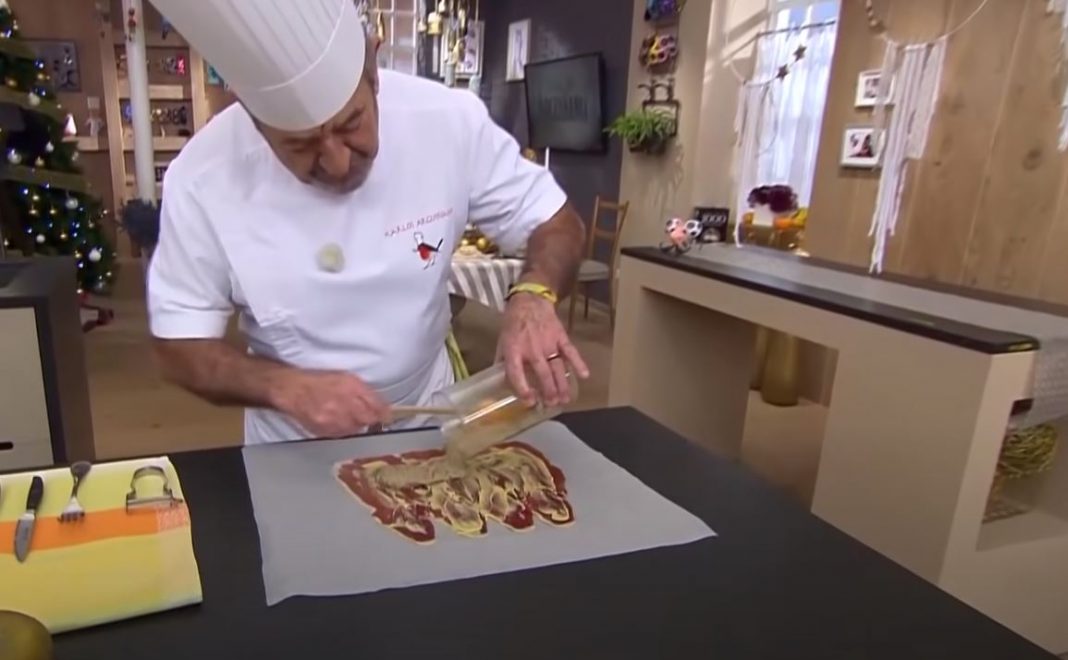 Ahora llega lo importante. Extiende las lonchas de jamón sobre un papel de horno, solapadas. Úntalas con la mostaza y la crema de champiñones que has realizado anteriormente. Ahora, unte el solomillo con el paté (puedes omitir este paso, aunque le da un toque extra). Coloca el solomillo y con ayuda del papel de horno enrolla todo. Después introdúcelo en la nevera por una hora para que todo se integre y sea más ‘manejable’. Ya solo queda un paso.