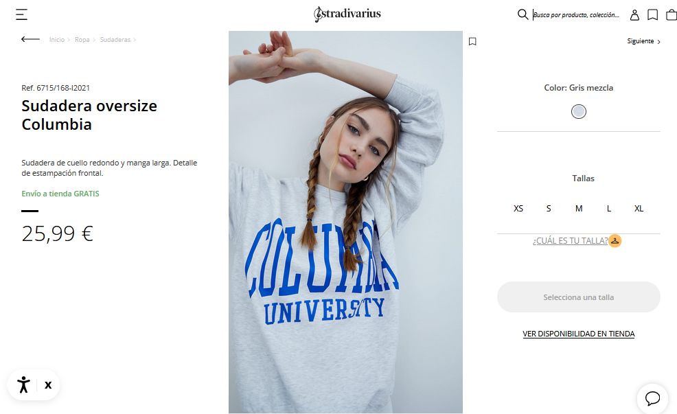 Es otra de las hermosas sudaderas que prefieren las mujeres en esta temporada de invierno, dado que son de cuello redondo y de manga larga. Inclusive, tiene un detalle de estampación en toda la parte frontal de Columbia para generar ese estilo perfecto en esta temporada. Esta es super cómoda que se puede usar en cualquier momento del día. Entonces, si deseas comprar esta sudadera solo tienes que entrar a Stradivarius por un precio de 25,99 €.