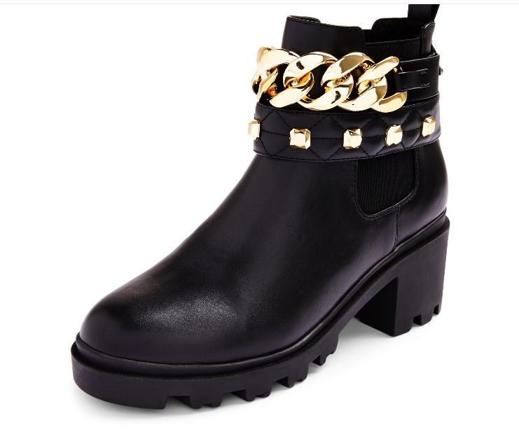 1Botines Chelsea negros de tacón bajo con varias tiras decorativas, de Primark