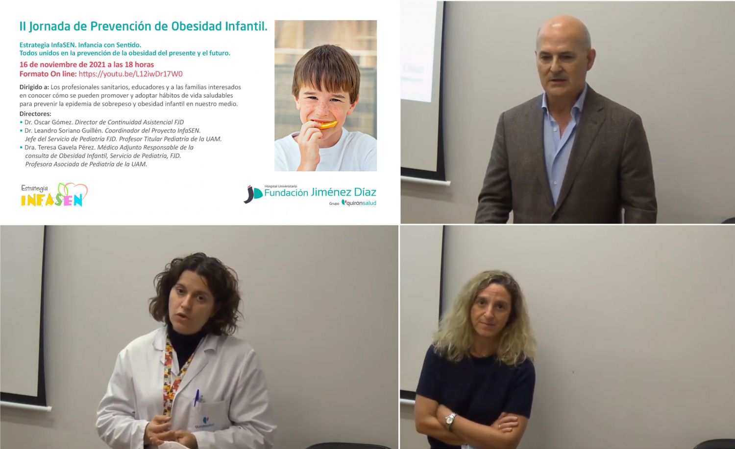 Con el objetivo de fomentar la colaboración de todos los participantes en la detección precoz y la prevención del sobrepeso y la obesidad infantil, la Fundación Jiménez Díaz ha celebrado su II Jornada de prevención de la obesidad infantil del Proyecto InfaSEN -en esta edición, en formato online y disponible para su visualización en el canal de Youtube de Quirónsalud-, dirigida a los profesionales sanitarios, educadores y familias interesadas en promover y adoptar hábitos de vida saludables entre los más pequeños.
