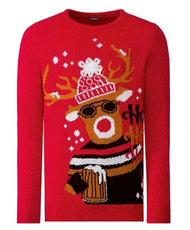 Hay muy pocos animales más navideños que un reno. Por no decir ninguno. De ahí que hayamos creído necesario mostrarte este jersey que hemos visto en el catálogo de Lidl. Porque en su estampado aparece un reno. Pero no de cualquier manera, sino con una jarra a rebosar de cerveza en la mano. ¿Puedes ser más divertido? Permítenos que lo pongamos en duda. Además, como en el caso anterior, sale muy bien de precio. Si te decides a comprarlo tan solo vas a tener que desembolsar 9’99 euros.