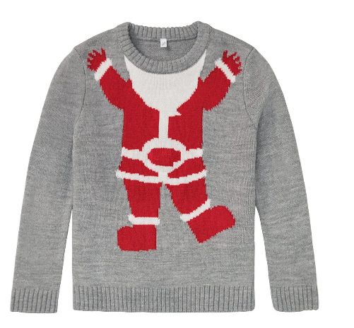 Pocos jerséis navideños más originales que estos hemos visto últimamente. Y todo porque tiene un estampado que, una vez puesto da la sensación de que la cara de quien lo lleve es Papá Noel. Además tiene un efecto luminoso que nos encanta. Su precio es de tan solo 8’99 euros.