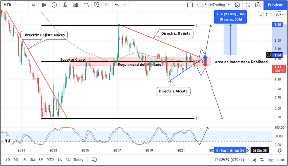 No obstante, desde el punto de vista técnico vemos que el precio una vez llega a los niveles previos a la pandemia alrededor de 1,78 euros, comienza un movimiento de retroceso el cual puede poner en peligro la estabilidad de la acción a largo plazo.