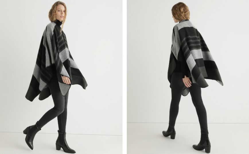 Hasta aquí la propuestas que hay en El Corte Inglés por menos de 25 euros, pero no te preocupes porque hay varias también cercanas a ese precio. Por ejemplo, y siguiendo con el estilo de anterior, esta capa de más abrigo en tonos grises y negros con estampado a rayas y ribeteado a tono. Hecha 100% en acrílico, es ideal para ir cómoda y elegante para un día de compras o una ocasión especial. Su precio es de 25,95 euros.