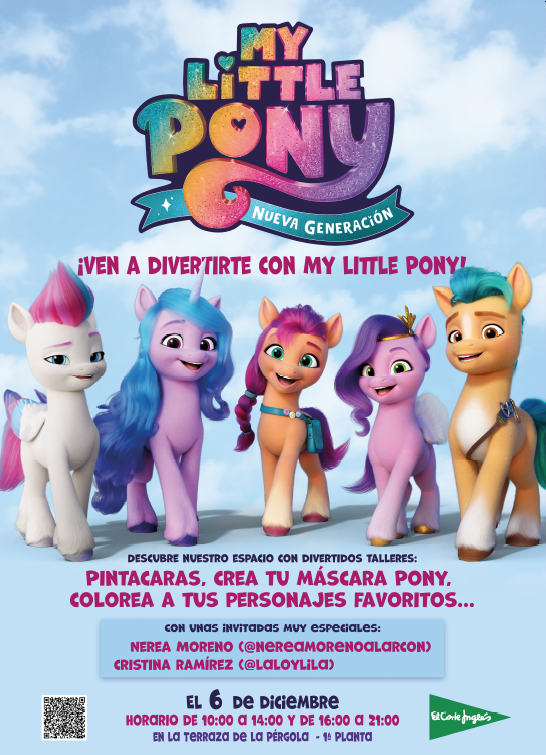 La compañía de entretenimiento lanza la nueva generación de My Little Pony. Hasbro invita a divertirse con My Little Ponny en la inauguración de la nueva flagship con unas invitadas de excepción, las influencers Nerea Moreno @nereamorenoalarcon y Cristina Ramírez @laloylila. El próximo 6 de diciembre se inaugura el nuevo espacio en El Corte Ingles de la Avd. de Francia (en la terraza de la pérgola-1º planta)