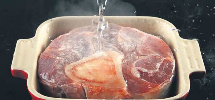 Descongelar la carne en agua fría es un proceso muy sencillo. Pero otra de sus ventajas es que se trata también de un proceso muy rápido. Para proceder con él lo primer que has de hacer es envolver bien la pieza de carne que vayas a descongelar en una bolsa de plástico. Una vez la tengas has de sumergirla en agua fría. Si pasados 30 minutos no se ha descongelado, cambia el agua y sumerge la bolsa de nuevo.
