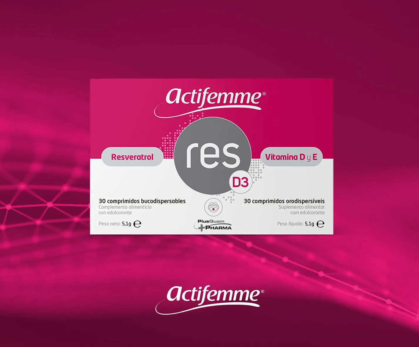 Actifemme® RESD3 es un producto innovador en forma de comprimidos bucodispersables compuesto por Resveratrol, Vitamina D3 y Vitamina E, que mejora los principales trastornos asociados a la perimenopausia, menopausia y postmenopausia.