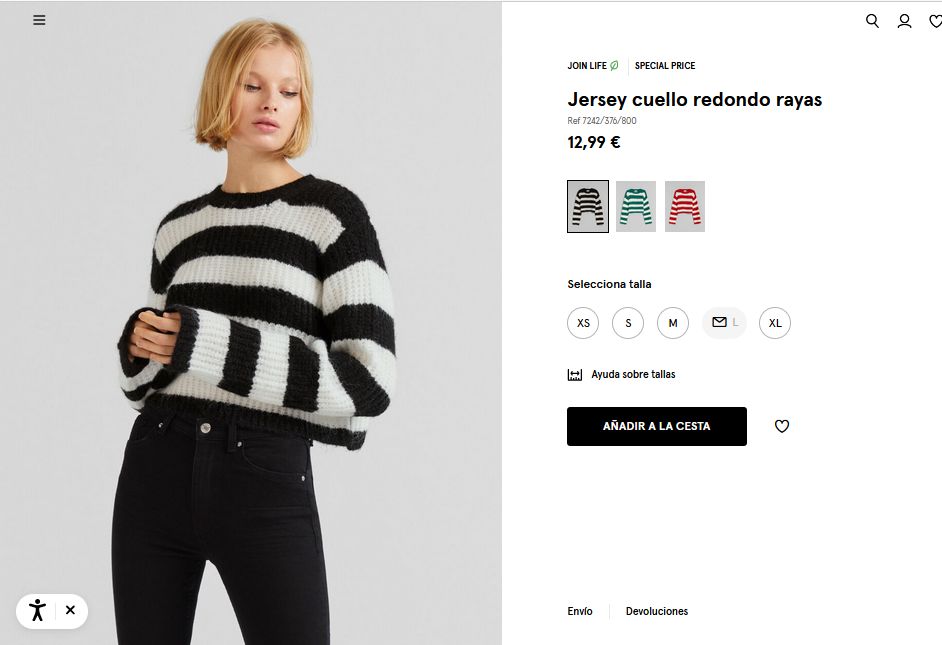Es un hermoso jersey que está fabricado en al menos 25% poliéster reciclado, para generar esa comodidad que una mujer busca en una prenda. Además, tiene un estilo de cuello redondo y es completamente de rayas. Siendo perfecto para esta temporada de invierno, dado que es completamente mangas largas. Para que puedan comprar este jersey solo tienen que entrar a Bershka por 12,99 €.