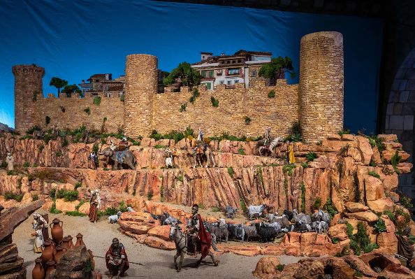 Otro de los belenes más bonitos de que todos lo que están expuestos en cualquiera de las ciudades de nuestro país es el de Barcelona. Destaca, sobre todo, porque aparte de los elementos y figuras clásicas tiene un montón de contexto, como unas bonitas murallas.