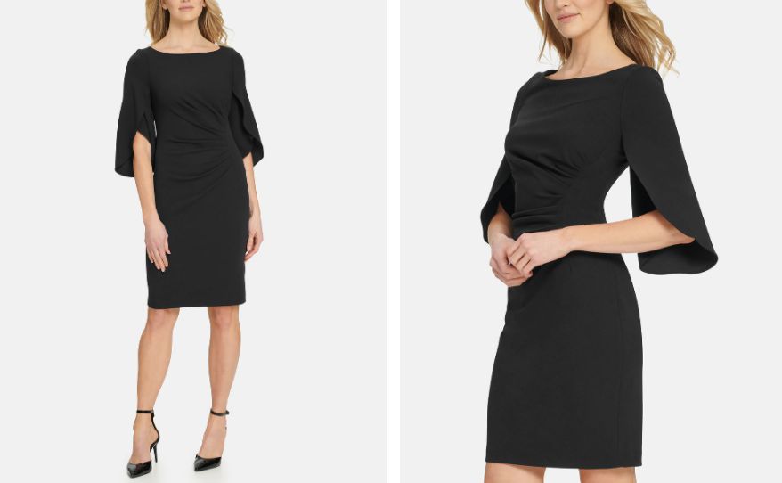 Te proponemos otra marca como DKNY y este vestido fruncido de manga francesa y cuello barco en un color que casa con todo y vale para cualquier ocasión, el negro. Una prenda sencilla, elegante, casi minimalista pero con detalles muy chic como esas espectaculares mangas francesas. Se vende en El Corte Inglés por 120 euros.