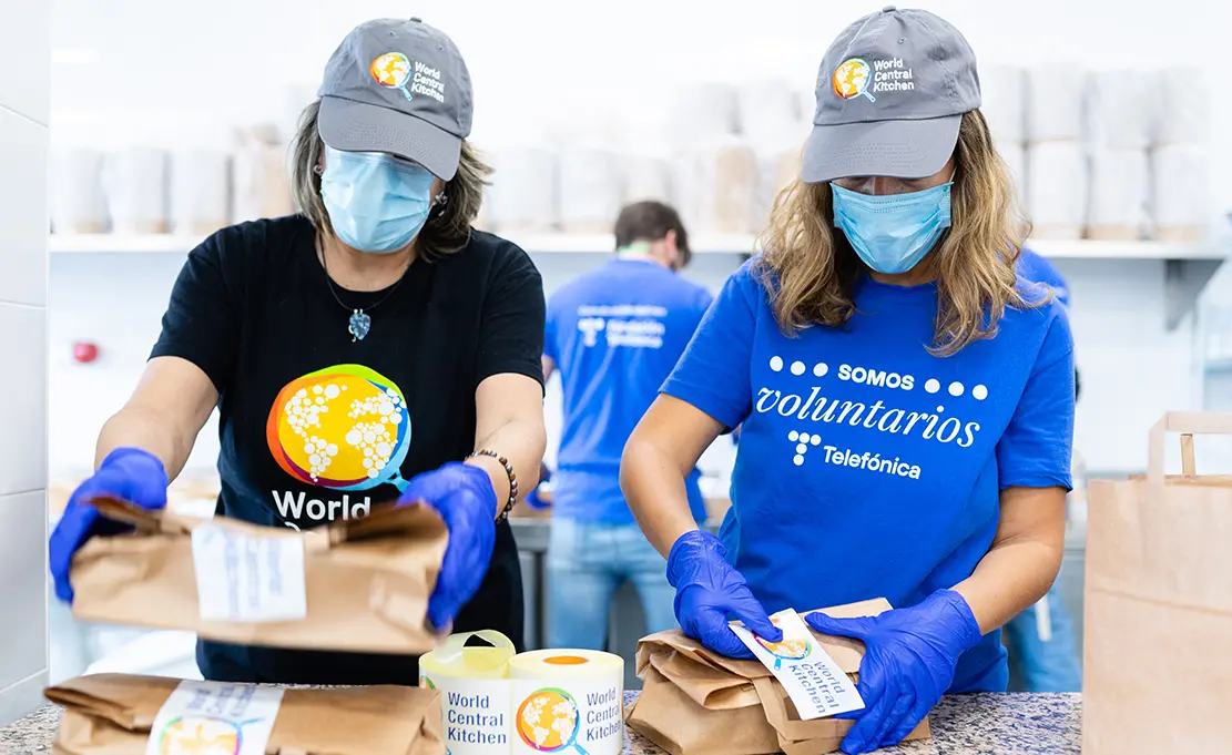 Los voluntarios de Telefónica prepararán cerca de 6.000 cenas de Nochebuena, a lo largo de tres días, junto a World Central Kitchen