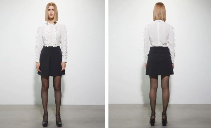 Terminamos con este vestido combinado de manga larga, con el contraste blanco y negro que siempre queda tan bien en el vestir, dando elegancia y clase. Y más aún con el diseño de la parte superior, en forma de blusa. Es un vestido corto combinado de manga larga y detalle de volantes, con cierre trasero de cremallera. Su precio es de 35,99 euros.