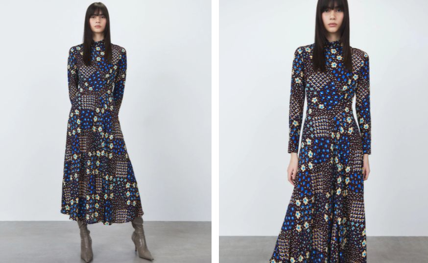 Seguimos con los modelos en largo y de Sfera con otra opción vaporosa y elegante a más no poder con lo que causarás sensación en las cenas navideñas. Se trata de este vestido largo estampado de flores con cuello alto y fabricado 100% en viscosa. Una opción cómoda, segura en el triunfo y por supuesto, como el resto de las propuestas, a gran precio en El Corte Inglés: 39,99 euros. En este enlace lo puedes comprar.