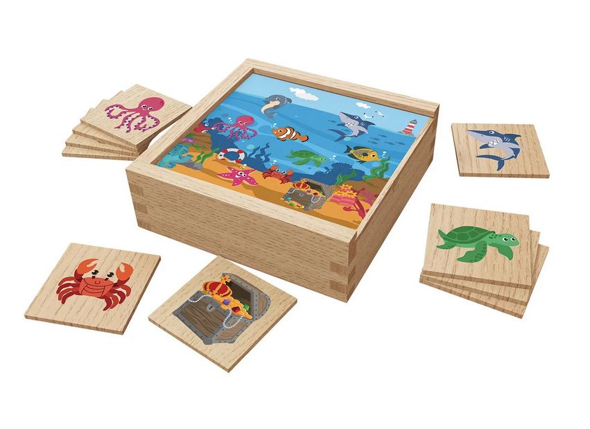 Este juego para estimular la memoria está fabricado en madera natural de gran calidad. Está compuesto de 20 fichas con 10 pares de motivos diferentes. Se recomienda a partir de los 2 años y es un juguete divertido para favorecer de forma lúdica la concentración, la coordinación óculo-manual y la memoria. Cada ficha mide 4,8 x 4,8 x 0,5 cm. y lo puedes conseguir en Lidl por solo 5,99€.