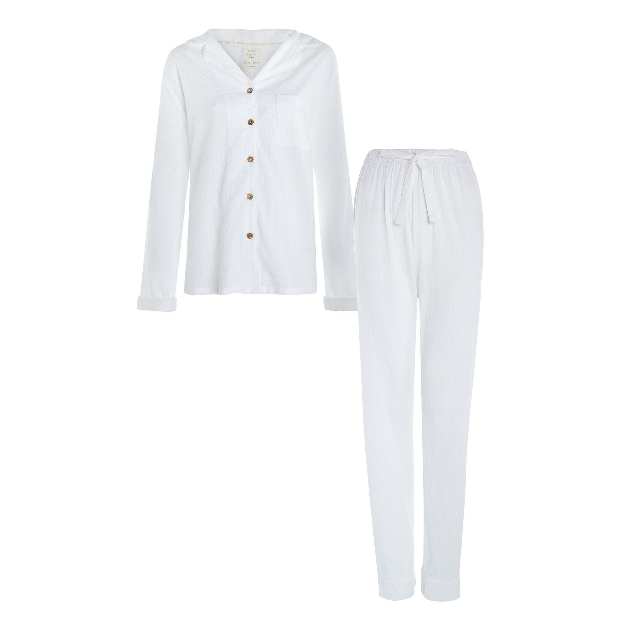 Es habitual que los pijamas tengan colores llamativos y diferentes estampados, incluso imágenes de personajes de ficción. Pero si estás un poco cansada de todo eso y lo que quieres es una prenda neutra y bonita, este pijama blanco te va a encantar. Porque tiene un estilo clásico pero muy femenino y queda genial.