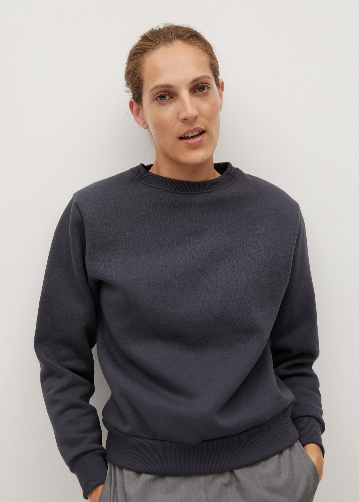 Es una de las sudaderas más sencillas que vas a encontrar esta temporada en Mango, pero curiosamente también es una de las más vendidas. Una prenda de algodón con manga larga, cuello redondo y terminaciones elásticas. En un neutro color gris oscuro, aunque también la tienes disponible en un alegre color verde.