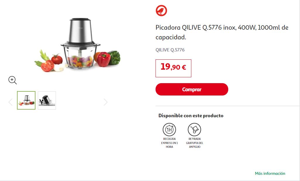 Con una potencia de 400W y su vaso de una capacidad de 1 litro, adicional trae su cuchilla picahielos. Este equipo es indispensable en los hogares modernos y su costo es de solo 19.90 euros.