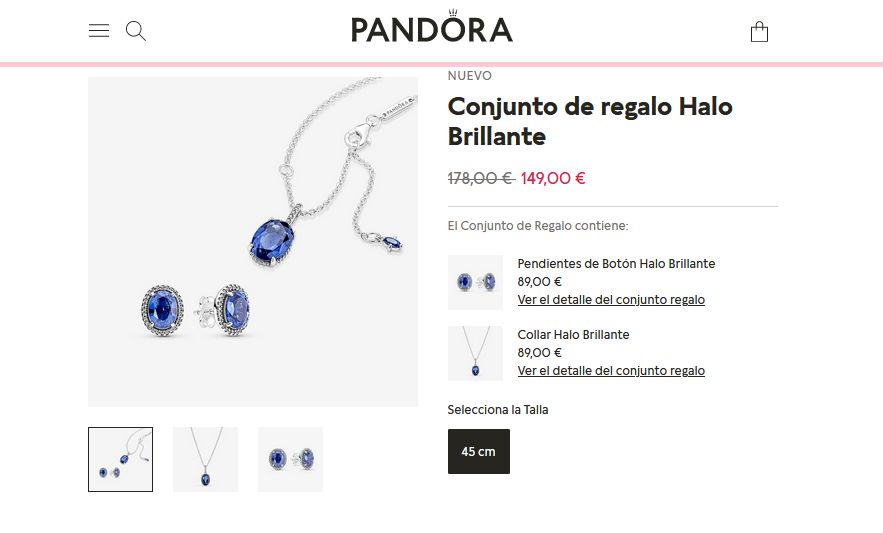 Es un conjunto que está formado por el Collar y los Pendientes de Botón Halo Brillante, este conjunto se convertirá en una joya esencial de tu colección durante muchos años. Inclusive, están acabados a mano en plata de primera ley. Además, el collar se puede ajustar a tres longitudes distintas, para que puedas ajustarlo a tu gusto. Para que lo puedan comprarlo solo tienen que entrar a Pandora por 149,00 €.
