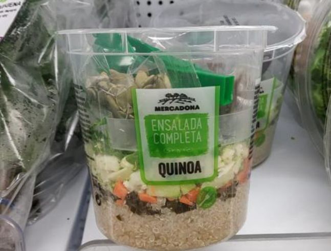 Si estás buscando que sea saludable y ligero para llevarte a la oficina deberías de pasarte por Mercadona. Y es que en cualquiera de sus centros vas a poder encontrar esta deliciosa ensalada de quinoa. Además de este cereal también lleva, entre otros, zanahoria, canónigos y pipas de calabaza.