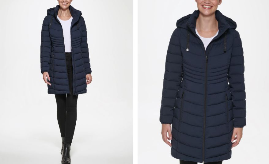 Vamos al otro extremo, para aquellas que preferís invertir un poco más, rascarse el bolsillo y comprar un abrigo que te durará toda la vida además. Este plumífero de DKNY es perfecto para olvidarse del frío e ir a la moda cada año. Tiene cuello alto con capucha con cordones, bolsillos y cremallera frontal. El Corte Inglés lo vende en negro, azul marino y gris. Aquí lo puedes comprar por 200 euros exactos.