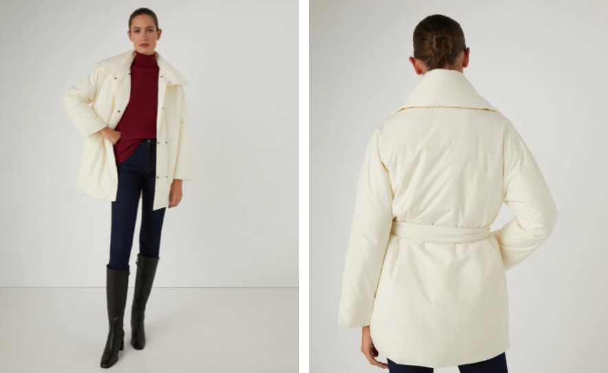 Seguimos con algo más sofisticado y original, muy elegante también en blanco, aunque lo tienes disponible en El Corte Inglés en negro y azul claro. Se trata de un abrigo Woman cruzado con cinturón, botones a presión, cuello de solapa y bolsillos. Ideal para estrenar estas navidades, aquí lo puedes comprar por 99,99 euros.