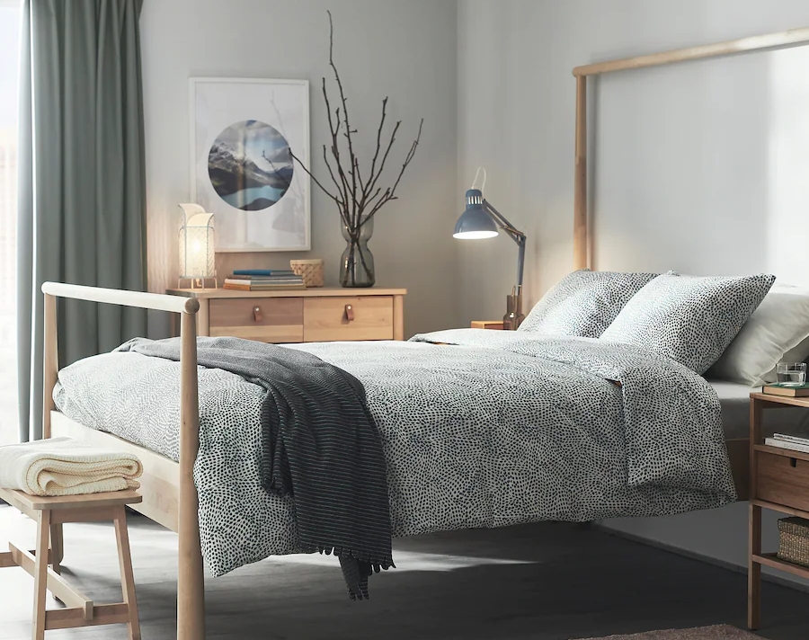 Siendo una tienda nórdica, no podía faltar una funda nórdica + funda de almohada en Ikea. Es de color blanco, con estampado fino en azul. Y la puedes tener por 6€.