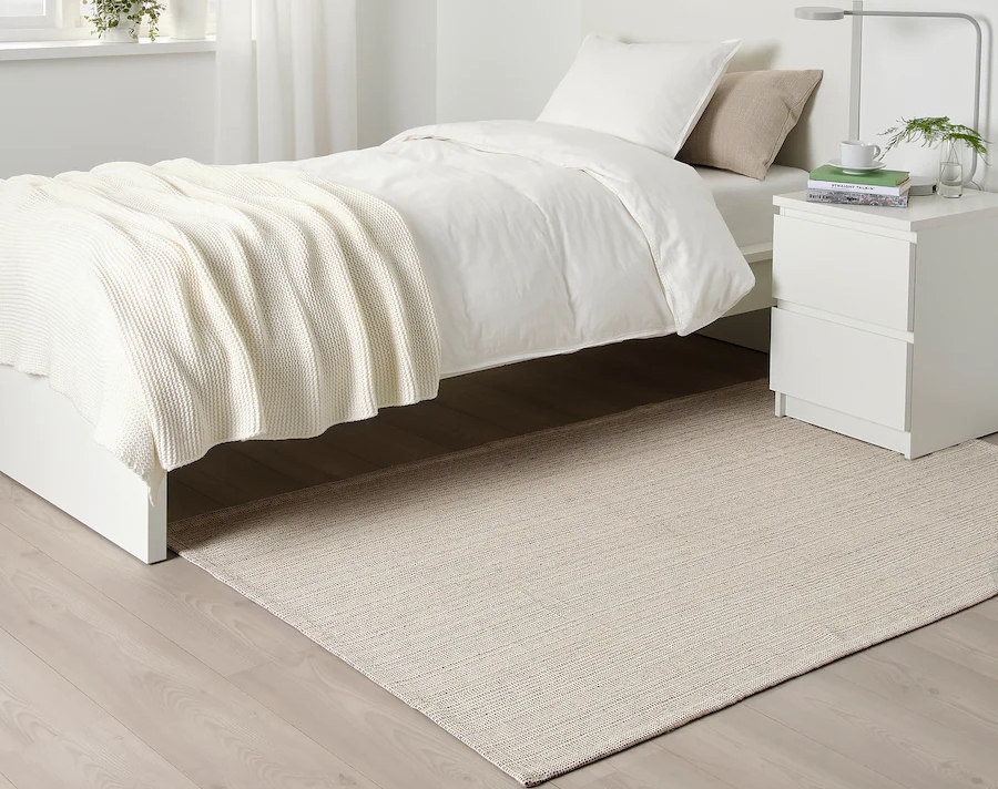 Para tu habitación, o para la estancia que necesites, si quieres poner algo más de calidez en tu suelo, puedes adquirir esta alfombra natural de Ikea. Mide 120×180 cm y solo cuesta 10 euros. La puedes elegir en dos tonos diferentes.