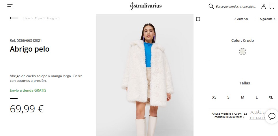 Es un abrigo de cuello solapa perfecto para las temporadas de invierno, dado que es super hermoso para crear ese look perfecto en invierno. Además, es de manga larga para que sea más cómodo de usar en el momento que deseen. Cuenta con un cierre con botones a presión para que tenga ese estilo hermoso que una mujer busca. Entonces, si desean comprar este abrigo solo tienen que entrar a Stradivarius por 69,99 €.