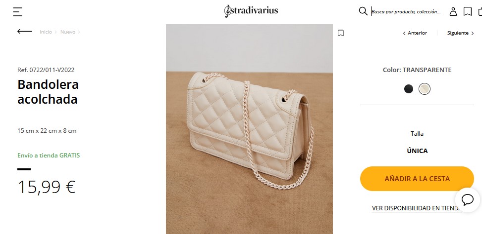 Es una hermosa bandolera que es completamente acolchada, siendo otra de las prendas muy solicitadas por las mujeres. Siendo perfecta para crear ese look perfecto, e inclusive es super cómoda ya que se puede trasladar a cualquier lugar por su tamaño. Además, cuenta con un estilo moderno y un asa para generar esa comodidad. Entonces, si lo desean comprar solo tienen que entrar a Stradivarius por 15,99 €.