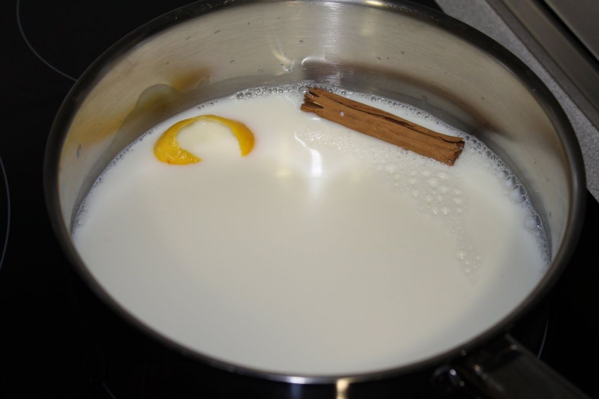 Ahora que tienes todos los ingredientes para la receta, empezamos pelando un limón. Intenta que la piel tenga el mínimo posible de la parte blanca, ya que esto amarga. Lo primero que debemos hacer es infusionar la leche, así que de los 800 ml, separamos 200 ml que irán a la nevera. Con los 600 ml restantes, los pasamos a un cazo con el fuego medio-alto y añadimos la rama de canela y la piel del limón. Dejar hasta que hierva para entonces retirar el cazo.