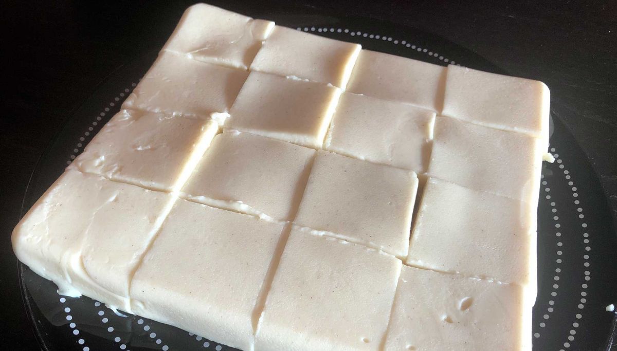 Después de haber dejado la leche frita el tiempo necesario en la nevera, toca finalizar la receta. Ahora es cuando deberías poder cortarla en el tamaño de porción que prefieras. Prepara una sartén o un cazo con una buena cantidad de aceite y pon el fuego fuerte para que esté listo para freír.