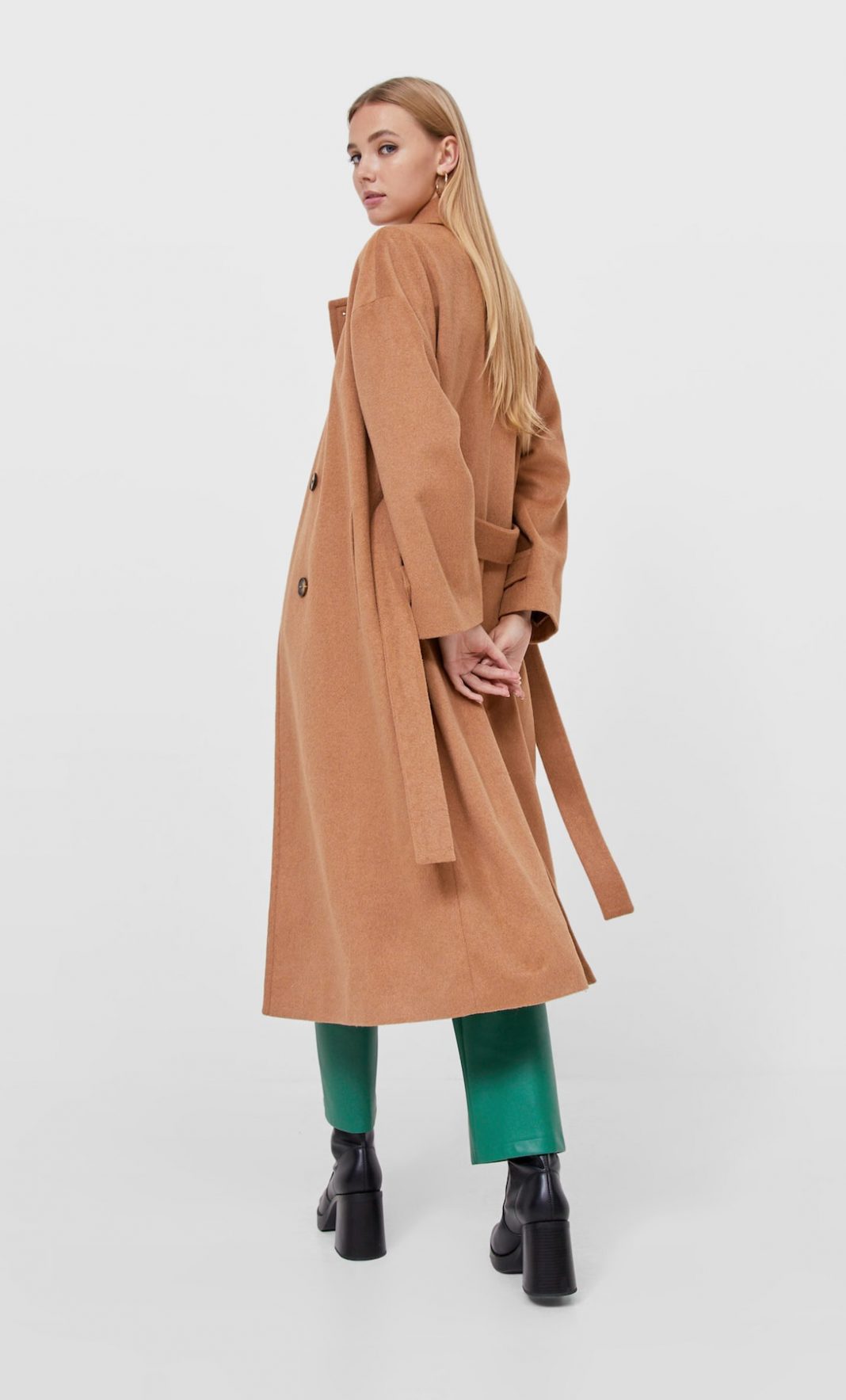 7Abrigo largo cinturón Stradivarius