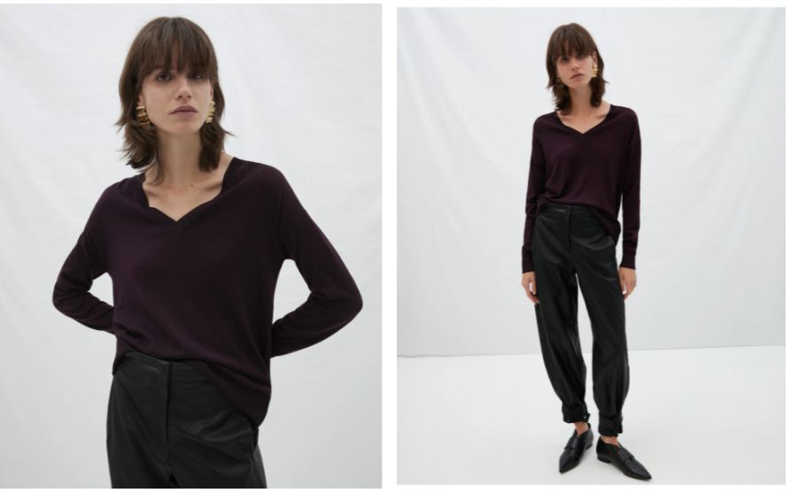 En esta selección hay grandes y solicitadas marcas como Adolfo Domínguez y que en este caso tiene además el mayor descuento de esta campaña, el 58% aunque solo en color morado (el resto, al 50%). Se trata de un jersey de mujer de lana merino 100% overside y de cuello pico con corte recto y etiqueta logo. Lo tienes en El Corte Inglés en granate, azul, negro y morado. Su precio es de 49 euros en el caso morado. Lo puedes comprar aquí.