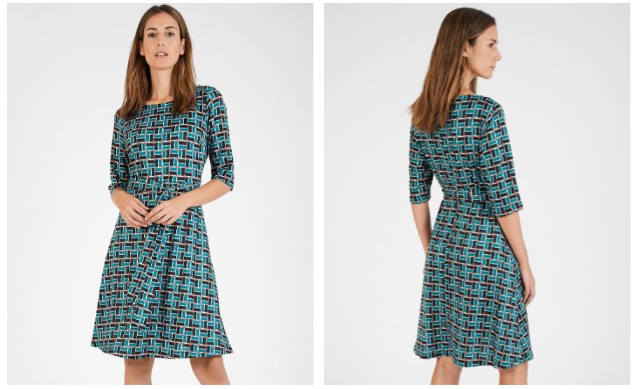 No dejamos los vestidos con otro en oferta en El Corte Inglés, con un descuento de los más altos de esta campaña: un 57%. Se trata de un vestido de manga francesa, lazo en la cintura y estampado geométrico, como el anterior, pero con un diseño y estilo diferente. Se vende en color azul. Lo tienes ahora con la rebaja por 29,99 euros y aquí lo puedes comprar.