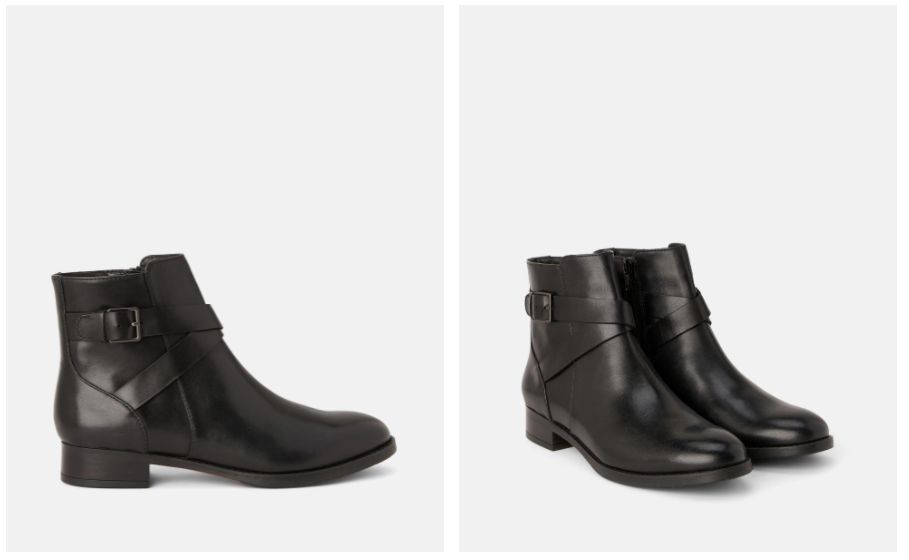 En botines comenzamos con estos de Clarks en negro con adorno de correa y hebilla. Un diseño de moda, elegante y transgresor a la vez. Son botines fabricados en piel de primera calidad de color negro y equipados con la plantilla Ortholite que absorbe el impacto del pie al andar. El interior está hecho en piel y tejido sintético. Tiene puntera redonda y cierre de cremallera. También tiene un 40% de descuento y su precio se queda en 78 euros. Aquí los puedes adquirir.