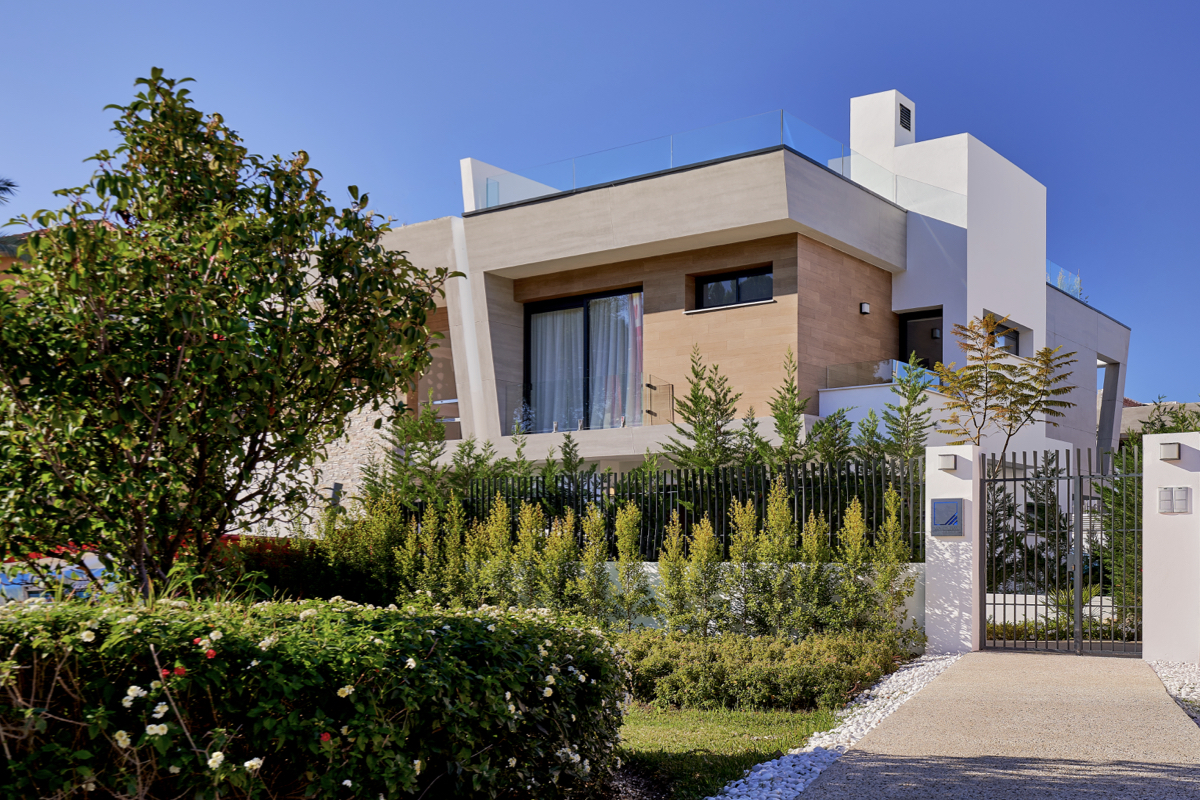Todas las 14 villas que componen este residencial han sido construidas con un estilo arquitectónico andaluz. Además, para sus interiores, la inmobiliaria ha elegido la madera, los tonos claros como el beige y el blanco y elegantes detalles en verde agua y azul marino. Su decoración es minimalista, sus líneas limpias y la vegetación puebla los alrededores de las viviendas.