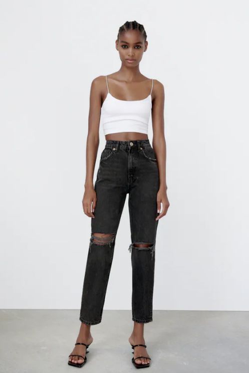 Zara para que todas sus clientes estén a la moda, también trae en su colección el Jeans mom fit rotos. Puedes llevarlo en cualquiera de sus variados colores y solo cuesta 22.95 euros.